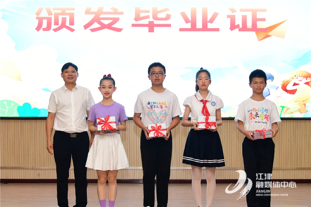江津融媒讯(记者 张渝)又是一年毕业季,依旧浓浓惜别情。6月30日,东城小学举行“感恩成长 放飞梦想”2017级学生毕业典礼,欢送246名毕业班的学生,让他们以最美好的方式告别小学。