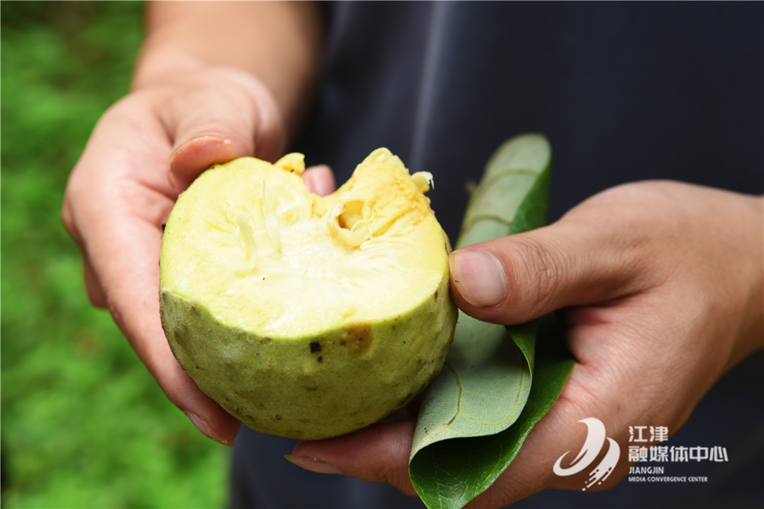 在楠林小组的树林里,20余株南川木波罗枝繁叶茂,果实累累。果实如拳头大小,橙黄,皮薄,表面有小疙瘩,口感似木瓜,除纯正果酸味外,无任何杂味。资料显示,南川木波罗的药用功能很强大,它的根、叶、花、果都可以泡水,清热解毒,最主要的药用功能是治疗便秘等肠胃疾病和皮肤病。