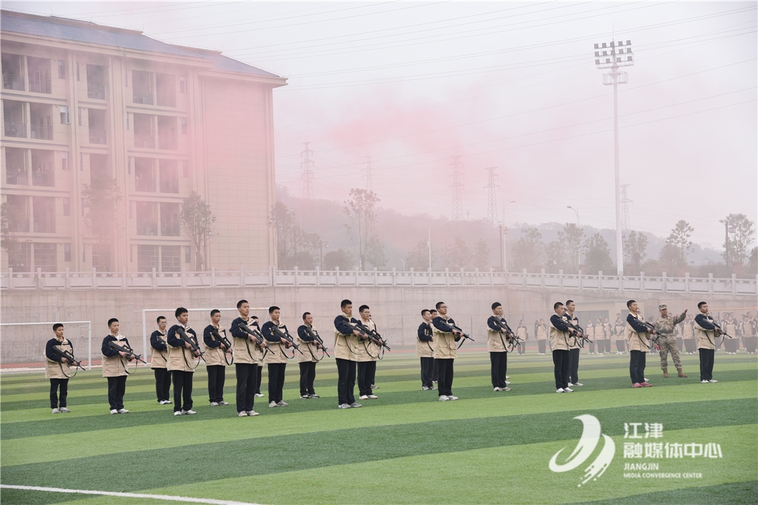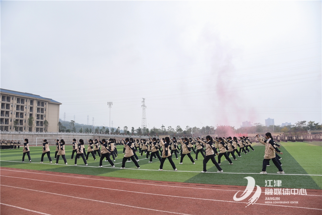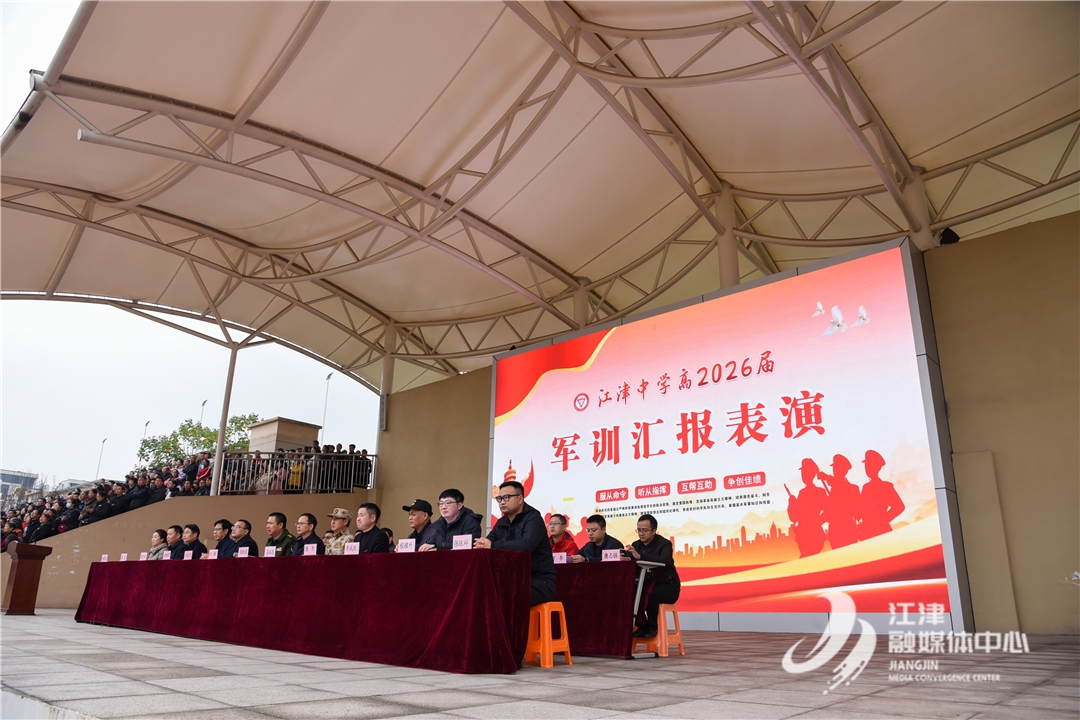江津融媒讯(见习记者 钟尧)12月3日,江津中学高2026届军训汇报表演在江津中学滨江校区田径场举行,高2026届的全体学生以班级为单位接受全校师生检阅。