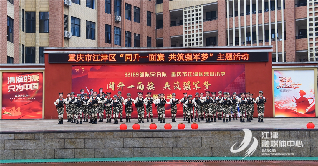 江津融媒讯(记者 陈俊希 通讯员 肖小玲)1月8日,一面曾悬挂在我国西部边防的五星红旗,伴随着近3000名师生的国歌声,在鼎山小学冉冉升起,由此拉开了我区“同升一面旗 共筑强军梦”主题活动的序幕。