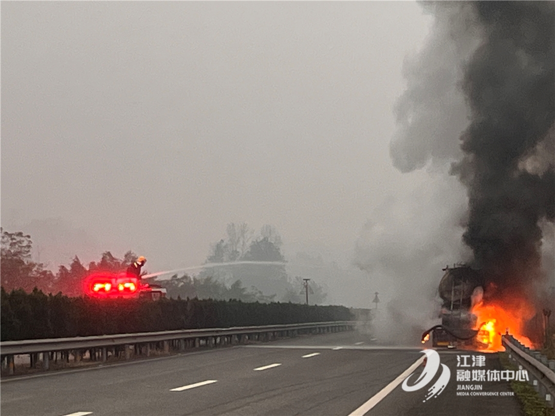 江津融媒讯(记者 阮瑞雪 通讯员 陈熙)1月14日清晨,重庆S21江习高速进城方向K37附近发生了一起惊险的六轴货车自燃事件。当天,一辆满载煤灰的六轴货车在行驶过程中突然起火,现场火势十分猛烈。接到警情后,重庆交通运输综合行政执法总队高速公路第五支七大队执法人员迅速赶到现场,展开紧急处置。