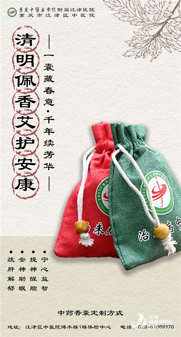 江津融媒讯(记者 苏展 通讯员 严雪梅)古时人们插柳戴艾以避秽驱邪,中医则用艾草制成香囊,将养生智慧融入传统民俗。随着又一个清明节气的到来,江津区中医院以“艾”为媒,为您推荐两款节气限定香囊,助您读懂芬芳中的独有“国风”。