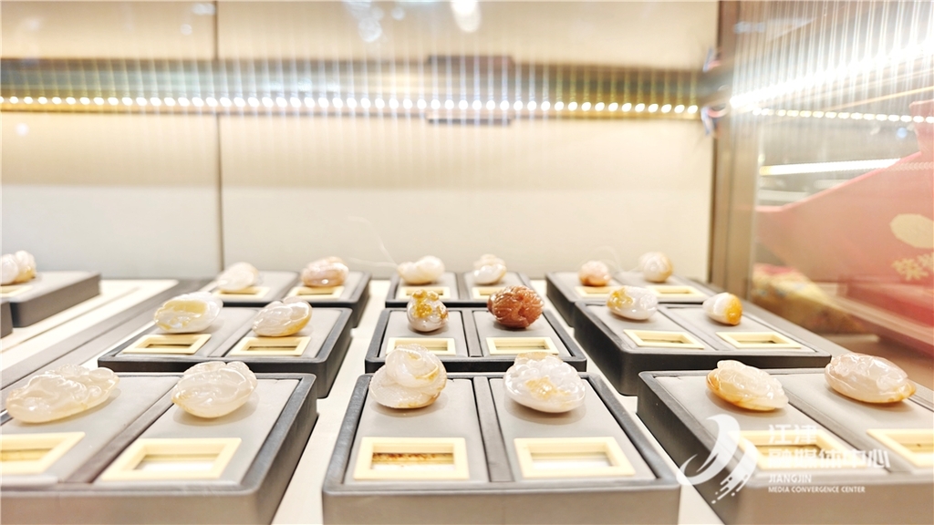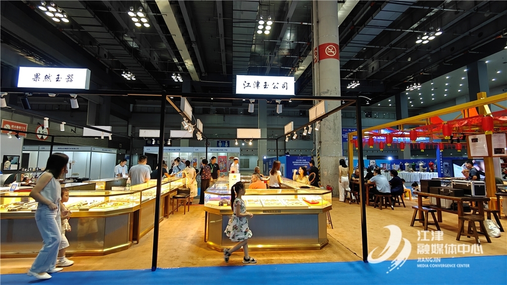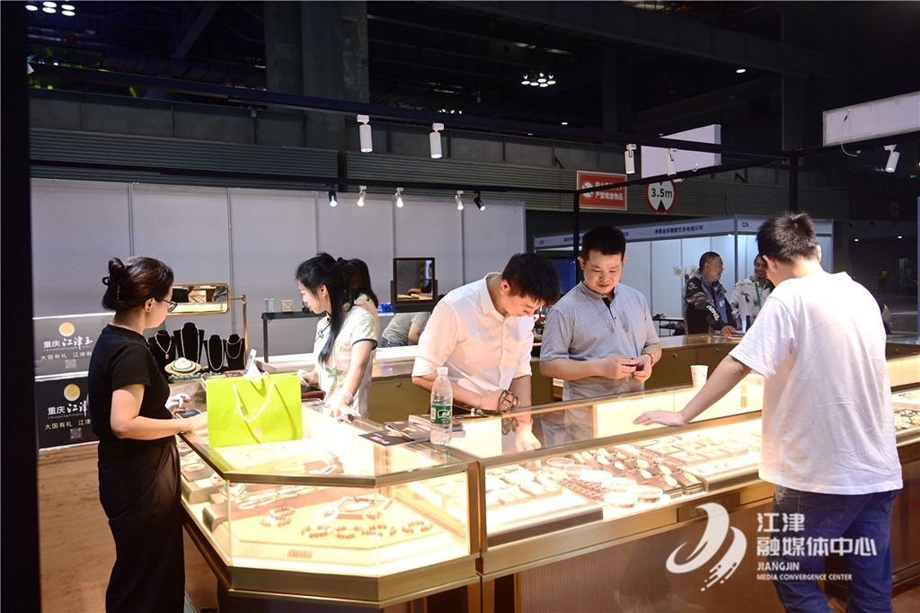据介绍,江津玉展团汇聚行业优质力量,吸引了重庆江津玉公司、渝熙玉集团、果然玉器、岩瑾珠宝、桦羽珠宝、津硒玉器、硒玉天成阁、藏玉阁珠宝、渝悦甄选非遗守艺馆、江津玉雕非遗传承人郭朝伟工作室等20 余家企业参展,各企业特色鲜明,构建江津玉全链条展示体系。