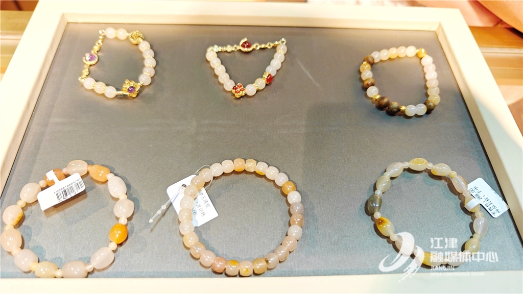 展区面积126平方米,分为了原石专区和饰品展区。原石专区按品质分级定价,方便收藏者溯源选购。饰品展区涵盖各企业核心产品,从简约款到复古款、从大众款到收藏款,品类齐全适配多元需求。同时,还推出了专属福利:如满 500元 减 80元、满 1000 元减 200元优惠,同步开通 “江津玉线上商城”“线上展会”,支持线上下单、现场提货或顺丰包邮,线上直播实时逛展。