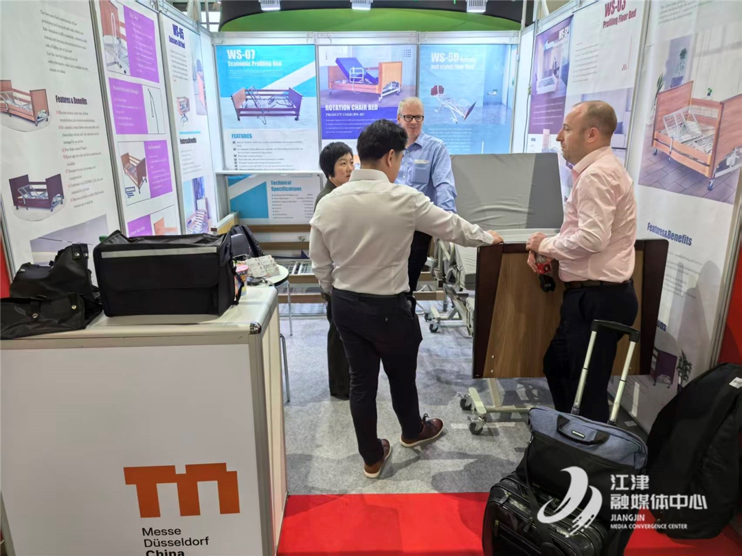 江津融媒讯(记者 刘星欣 吕晓 通讯员 明萌)配套丹麦进口防水、防高压击穿、防漏电医用电机,可手动和语音双重控制升降......最关键的是,还能左右任意旋转90度,使用方便灵活。近日,重庆顺美吉医疗器械股份有限公司(以下简称:顺美吉医疗),一款全球首创的左右旋转多功能电动护理床,在2025年德国杜塞尔多夫残疾人用品及康复设备展上首秀。