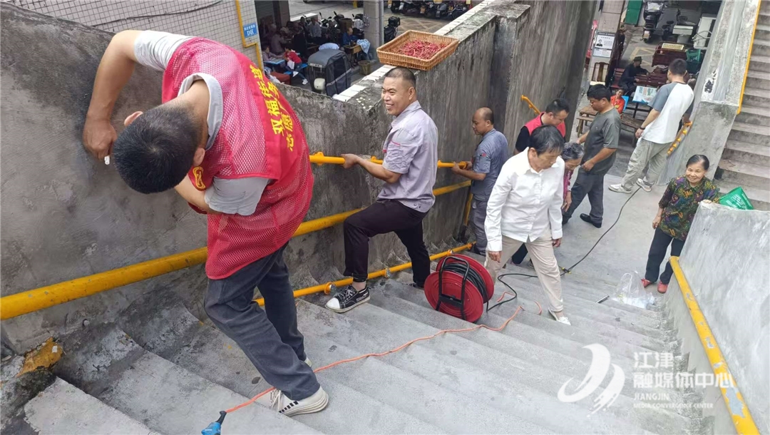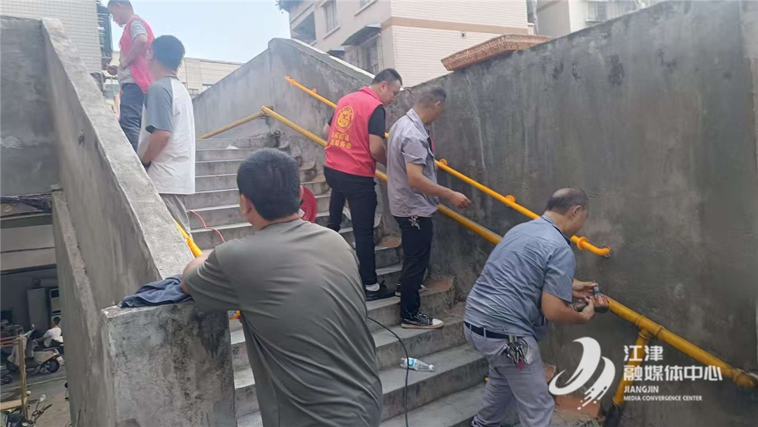 江津融媒讯(记者 刘星欣 通讯员 李丹娜)近日,双福街道双河路社区板仓街D区小区楼道里多了一抹亮眼的“安全色”——一排排崭新的黄色不锈钢扶手沿楼梯蜿蜒延伸,如同为居民出行筑起了一道贴心的“防护线”。