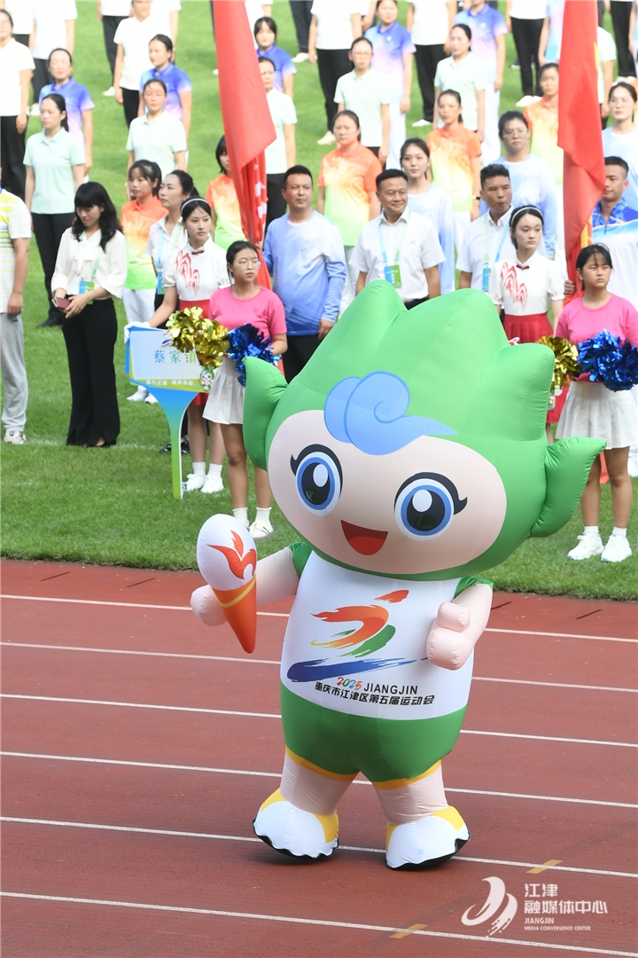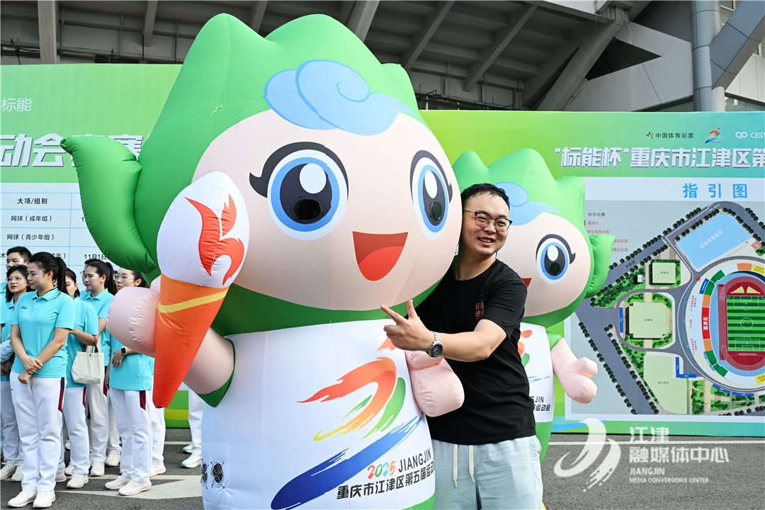 吉祥物“江江”同样惹人喜爱。其设计灵感源于江津的青山秀水,手举“5”字火炬的造型亲和力十足,生动诠释了“活力之城,津彩五运”的赛会主题,成为连接各年龄层市民的情感纽带。