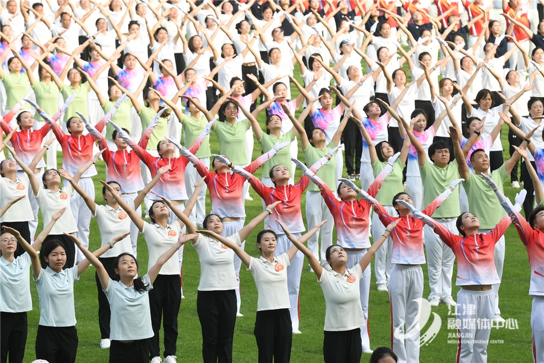 裁判组依据服装统一度、动作质量与精神面貌等维度进行评定。场上所有运动员全情投入,用整齐划一的动作诠释着“每天锻炼一小时,健康工作每一天,幸福生活一辈子”的健康理念,这场集体展演,成为本届运动会中最具感染力的全民健身风景线。