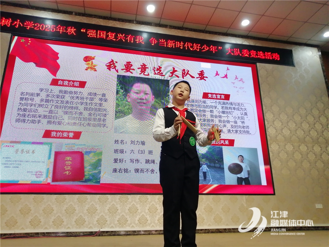 “我们的队名是什么?创立者和领导者是谁?”“少先队的标志是什么?有什么含义?”“少先队的队礼是什么”……10月16日,在双槐树小学举行的“强国复兴有我,争做新时代好少年”少先队大队委竞选中,来自该校四五六年级18个中队推荐的18名优秀选手一一登台,使出浑身解数,展示自己的风采,博得台下观众掌声不断,互动连连。