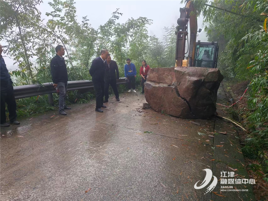 险情就是命令。塘河镇党委政府闻讯而动,迅速启动应急响应机制,第一时间组织人员冒雨赶赴现场。滚子坪村应急队伍立即对巨石周边松散、易坠落的碎石进行了紧急清理,并在事发路段两端规范设置了醒目的警戒线,派专人值守,提醒往来车辆和行人绕行避险,有效防止了次生事故发生。
