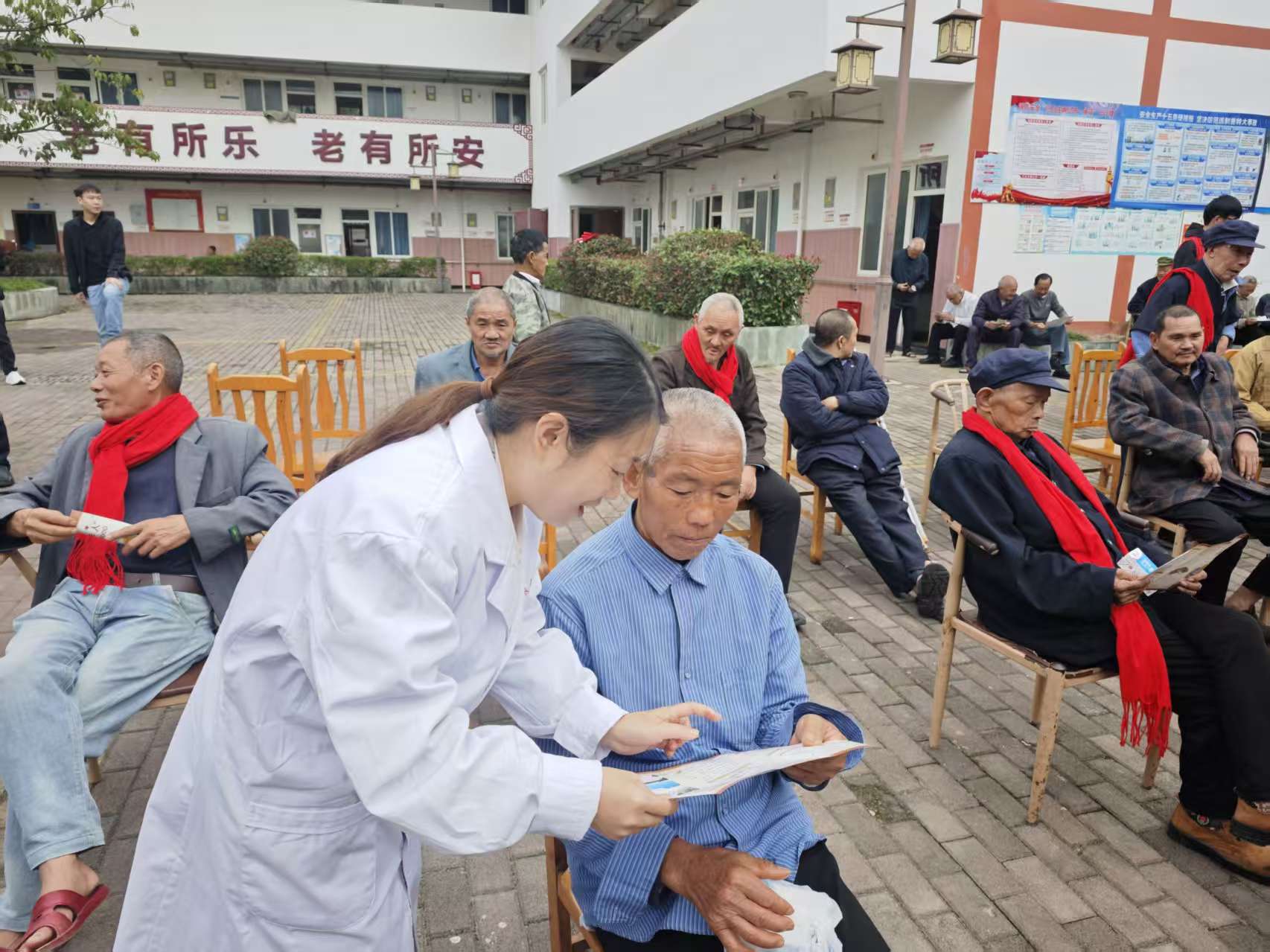 活动现场,中山镇卫生院的医疗团队带着专业设备,为老人们提供了“一对一”的免费健康服务。医生们耐心细致询问既往病史与日常用药情况,针对高血压、糖尿病等老年常见疾病,给出饮食、运动及用药调整的专业建议;护士们用通俗的语言普及秋冬季节流感预防知识。“您这血压有点高,平时要少吃盐,记得按时吃药。”一句句叮嘱,让老人们感受到家人般的关切。