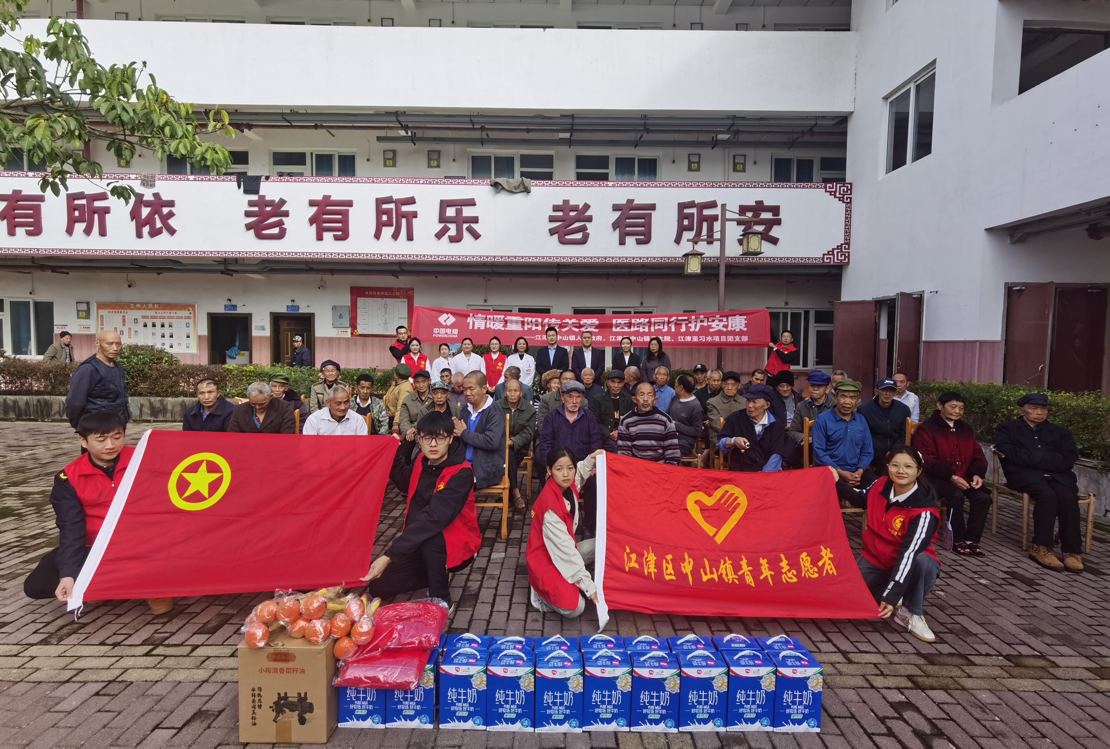 江津融媒讯(通讯员 杨敏)日前,中山镇人民政府、中山镇卫生院携手江津至习水项目团支部成员医疗志愿者与青年团员代表,共同走进中山镇养老院,为院内老人们送去健康关怀与节日祝福,让温情在秋日里静静流淌,将政策关怀与医疗服务送到老人“家门口”。