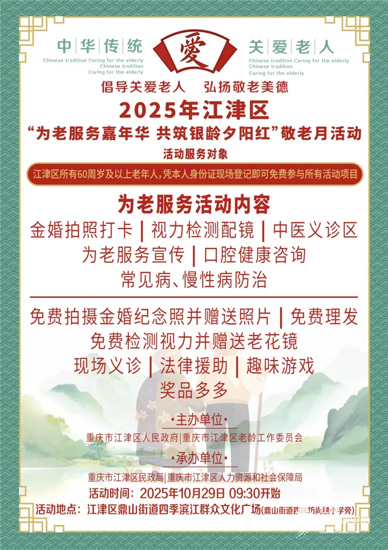 10月29日相约鼎山!江津敬老月活动暨养老护理技能竞赛即将启动